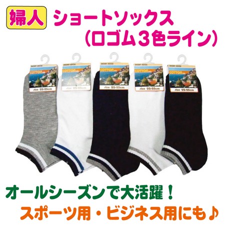 即発送【今なら必ずポイント20%(300円分)還元!!】【(15足セット)女性用 口ゴム3色ライン靴下】 女性 婦人 ショートソックス ソックス 靴下 15足セット