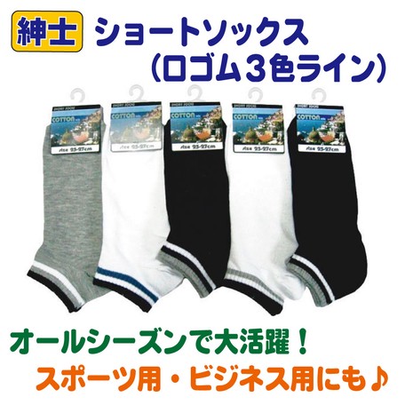 即発送【今なら必ずポイント20%(300円分)還元!!】【(15足セット)紳士 口ゴム3色ライン靴下】 紳士 ショートソックス ソックス 靴下 15足セット