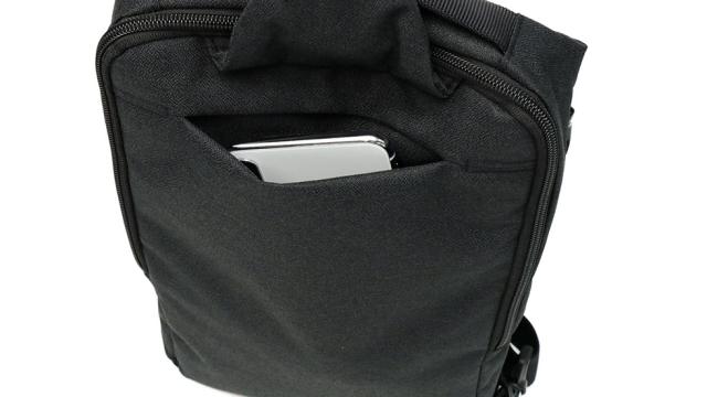 本体は内外ともにポケットが充実しています。その中でもまず注目したいのが、背面に備えたこちらの『スマートアクセスポケット』。素早く出し入れでき、かつ滑り落ちにくい構造のスマートフォン専用ポケットです。スマホは使用頻度が高い分、スムーズな取り出しができるデザインは外せないポイントです。