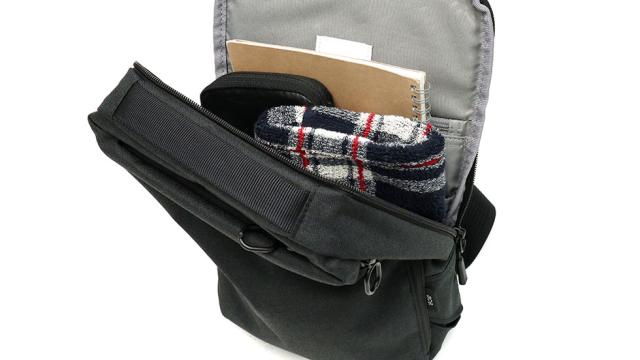 メイン収納部はB5の手帳や500mlのペットボトルが収納可能なサイズ感。ペンやメモ帳を管理するオーガナイザーポケットも備えた機能性の高い仕上がりです。ビジネスツールをコンパクトに、機能的に収納し持ち運べる、ミニマリストに嬉しい設計となっています。