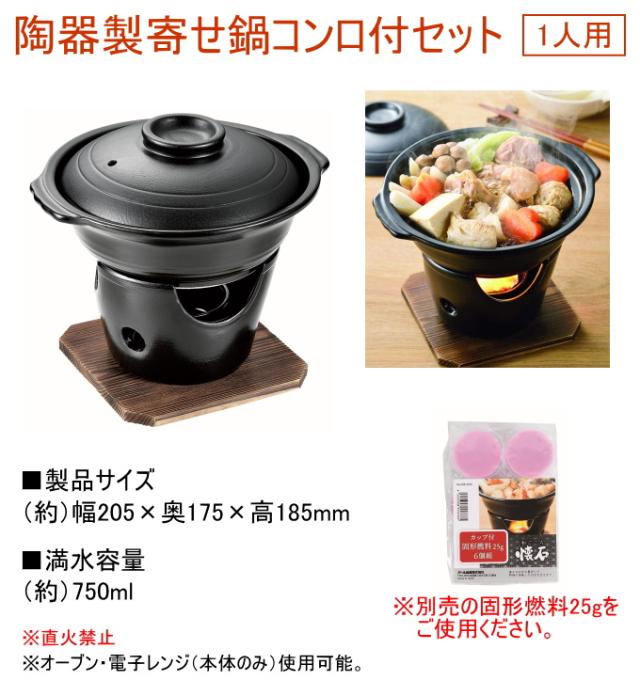 和ごころ懐石 陶器製寄せ鍋コンロ付セット 1人用 HB-5219 送料無料 セット 鍋 寄せ鍋 コンロ 陶器製 木台付き