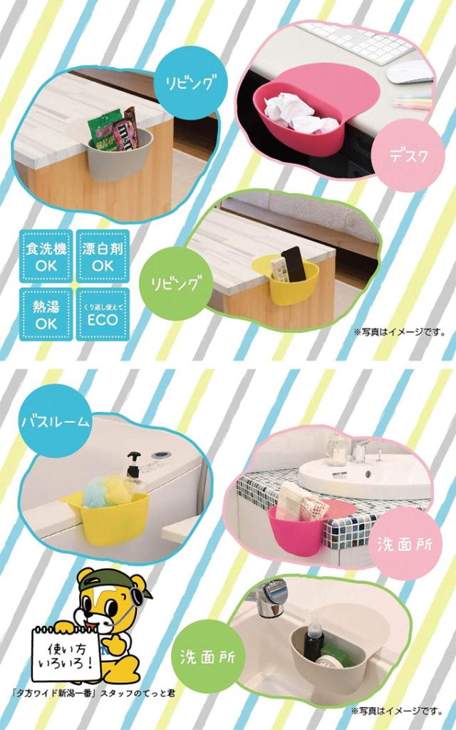 | 特徴 | 人気テレビ番組、夕方ワイド新潟一番から生まれたグッズ! ペタっといろいろなところにくっつき多用途に使用できます。 キッチンで三角コーナーとして使ったり、バスルーム、洗面所、リビングなどでもご使用になれます。 食洗機、漂白剤、熱湯用としてもOK! 繰り返し使えてECO。 ※本品は、粘着剤や吸着盤ではありません。ミラー加工(つるつるした面)によりシンクなどの表面に密着してすべりにくくなっているものです。 ※密着させる面によってはすべり落ちる場合があります。使用できる場所については一覧表を参考にしてください。 |