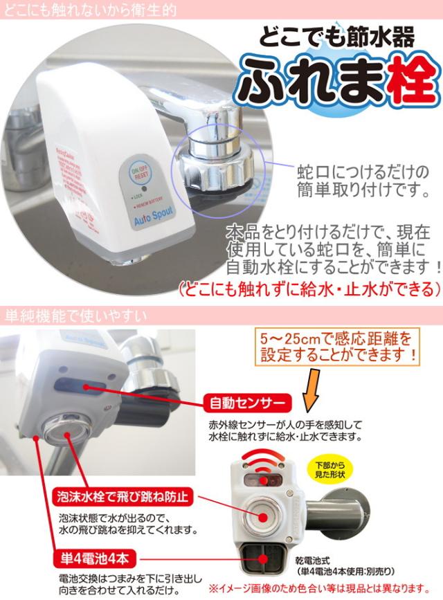 自動水栓 どこでも節水器 ふれま栓 タッチレス 給水 止水 蛇口 節水 赤外線 衛生的 後付け 電池式 キッチン オート ふれません