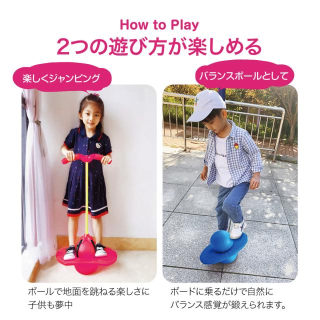 グリップを持ってジャンプ!ボールで地面を飛び跳ねる楽しさに子供達も夢中になります。