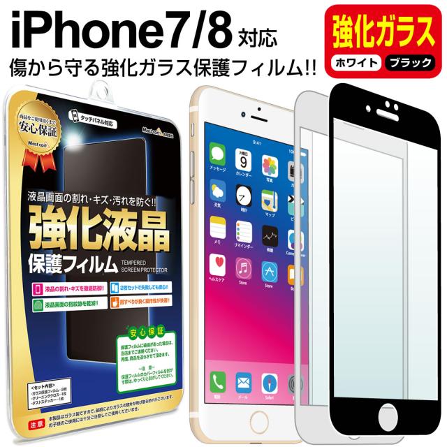 【強化ガラス】 iPhone8 / iPhone7 ガラス保護フィルム 保護フィルム iPhone iphone 8 7 アイフォン 8 7 ブラック ホワイト 白 黒 ガラス 液晶 保護 フィルム シート 画面 傷 キズ カバー ina