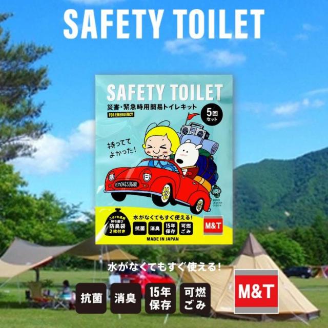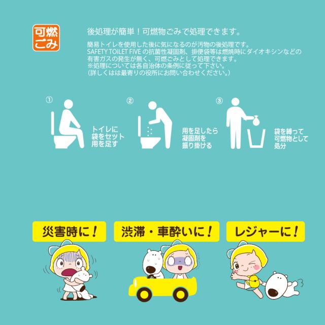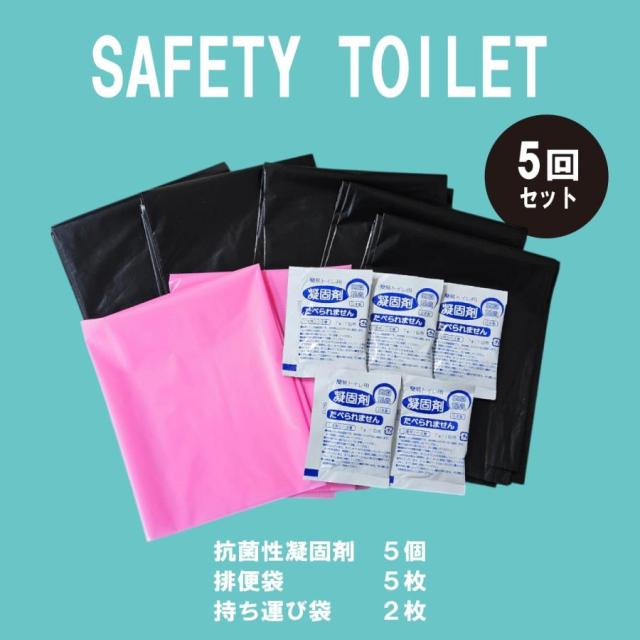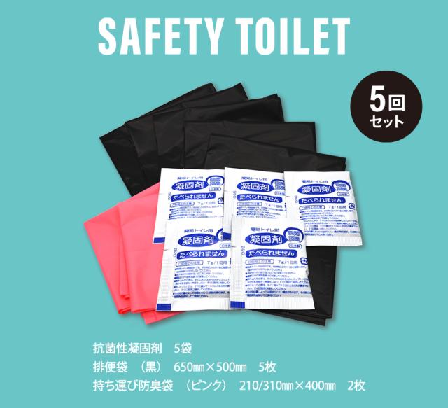 携帯トイレ 5回セット 簡易トイレ セーフティートイレ アウトドア用品 登山 トイレ 可燃ごみ 持ち帰り防臭袋付 抗菌 消臭 レモン&シュガー 5回