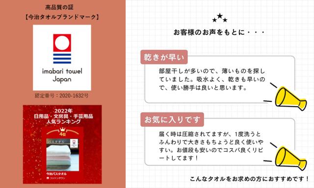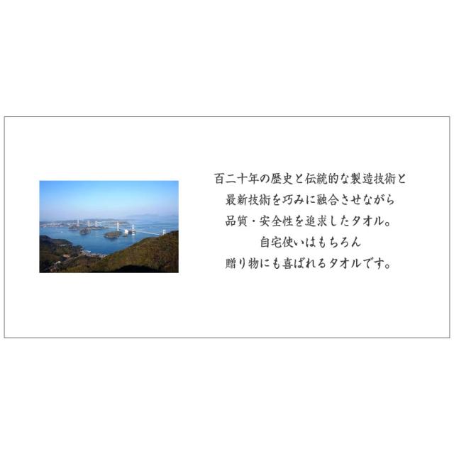 ◆高品質の証 【今治タオルブランドマーク】 国内最大規模のタオル産地、今治のメーカーをまとめる「今治タオル工業組合」独自の品質基準に合格した高品質のタオル商品であることを保証するものです。