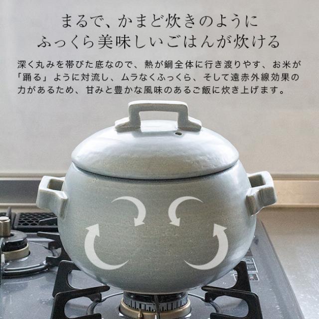 コロンとした形と軽さが特徴のごはん鍋は、対流が起こりやすい形状で、美味しくご飯が炊きあがります。