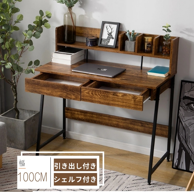 【在庫一掃】パソコンデスク 引き出し付き 収納台 パソコンデスク 木製 収納付 座デスク ミシン台 シェルフ付きデスク デスク付きシェルフ 書斎机 書斎デスク 学習机 勉強机 Office_2 新生活