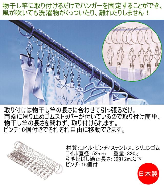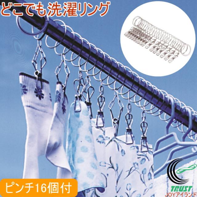 どこでも洗濯リング ピンチ付き KS-2641 日本製 洗濯用品 生活雑貨 洗濯バサミ 干す 便利 リング ステンレス サビにくい ピンチ付き