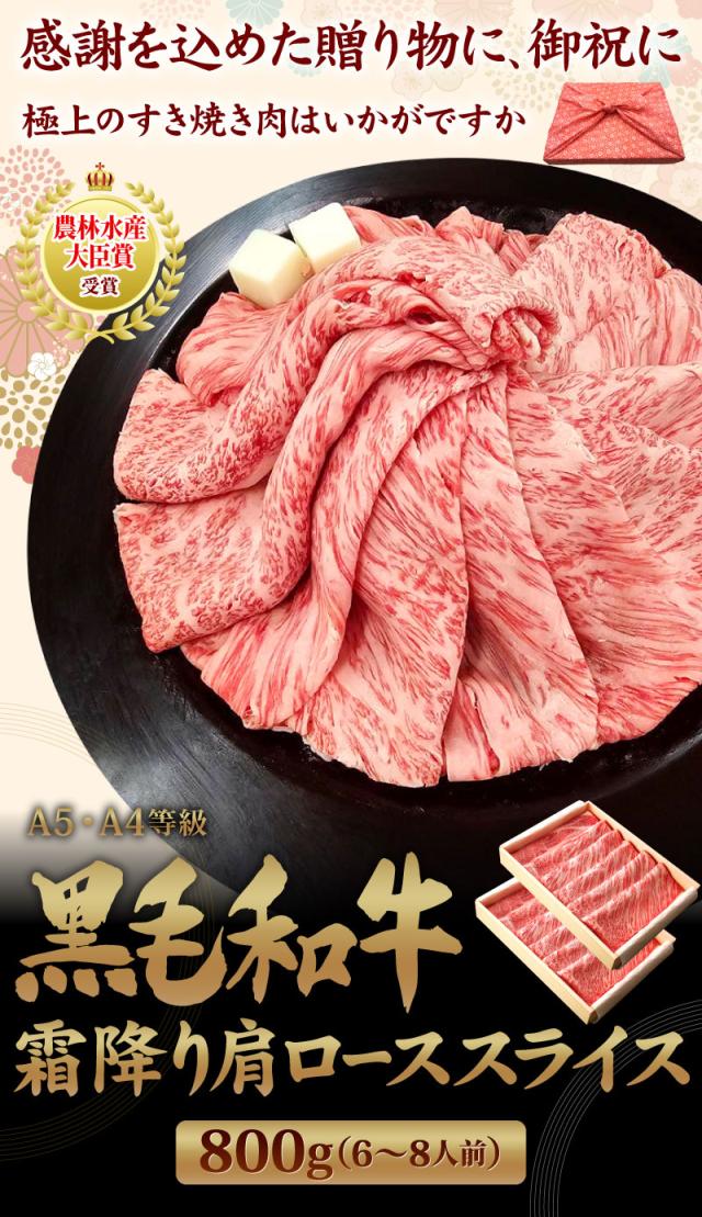 黒毛和牛 霜降り肩ローススライス 800グラム A5・A4等級 すき焼き肉 すき焼き お歳暮 しゃぶしゃぶ 和牛 お肉 牛肉 ギフト プレゼント 内祝い お祝い 御礼 誕生日