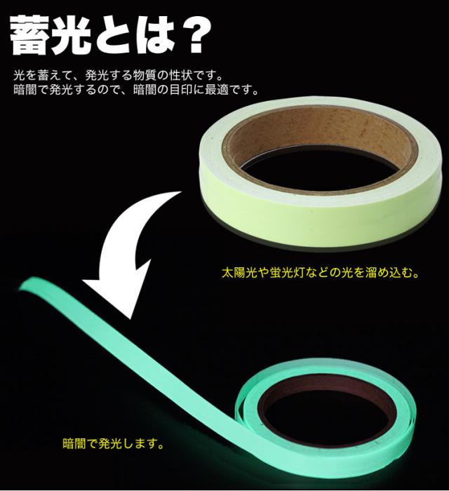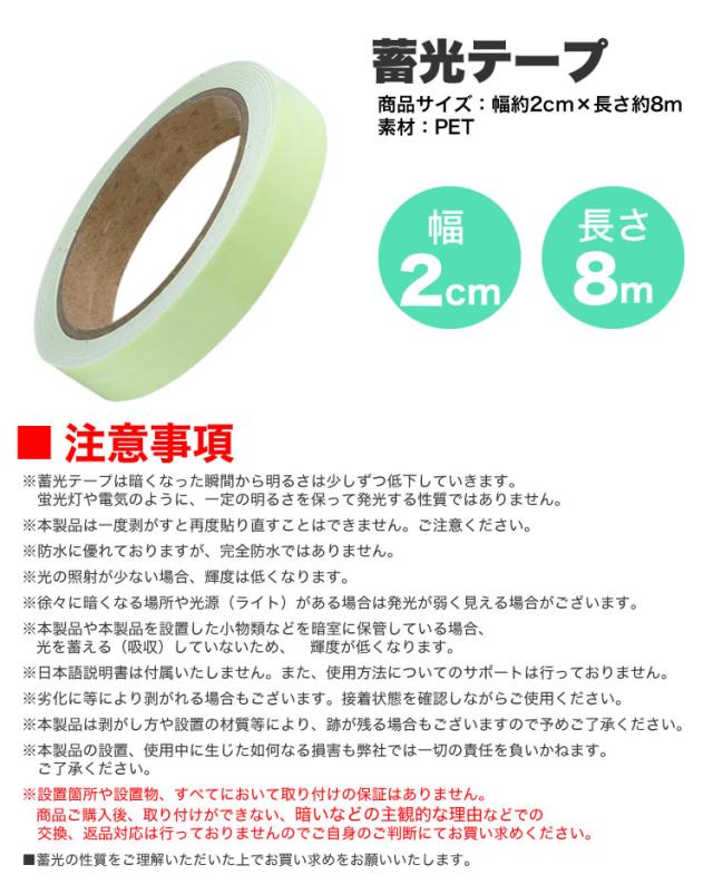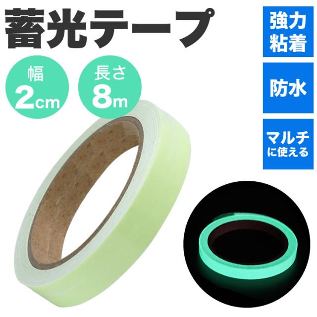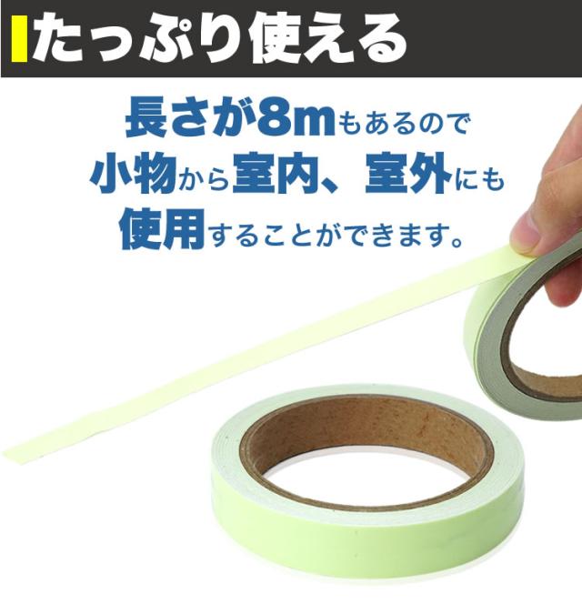 蓄光テープ 夜光テープ 8m 幅2cm 発光テープ シール 階段 手すり 目印 夜間に光る グリーン 防犯 防災 非常口 安全対策