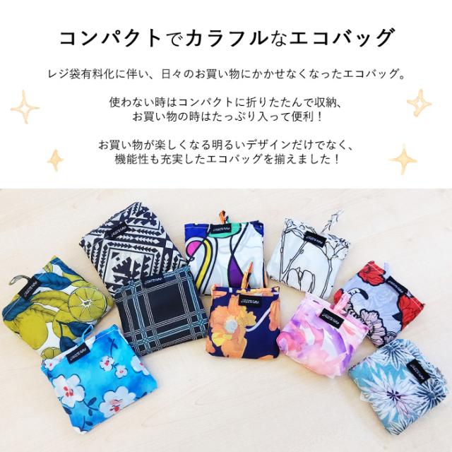 レジ袋有料化に伴いお買い物にかかせなくなったエコバッグ。 使わない時はコンパクトに折りたたんで収納可能。 場面に合わせて使える便利な3タイプのサイズ展開! お買い物が楽しくなる、カラフルで明るいデザインのエコバッグです。