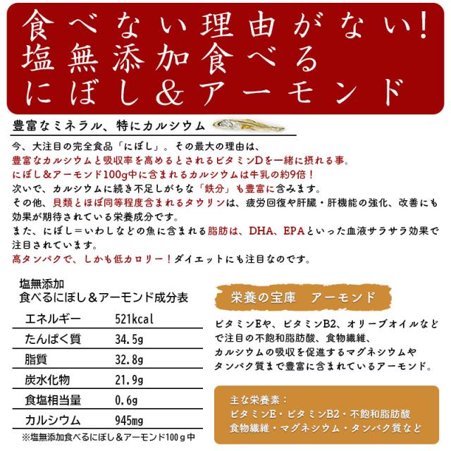 アーモンドフィッシュ 小魚アーモンド いわし イワシ 鰯 カルシウム 骨 魚 海鮮 給食 無糖 塩分控えめ 塩分制限 定番 高タンパク 柔らか 独自製法 瀬戸内産 瀬戸内海産 煮干し にぼし 妊婦 妊娠中 高齢者 素材の味 酸化防止剤不使用 保存料不使用 着色料不使用 ナチュラル 自然 素材そのまま 成長期