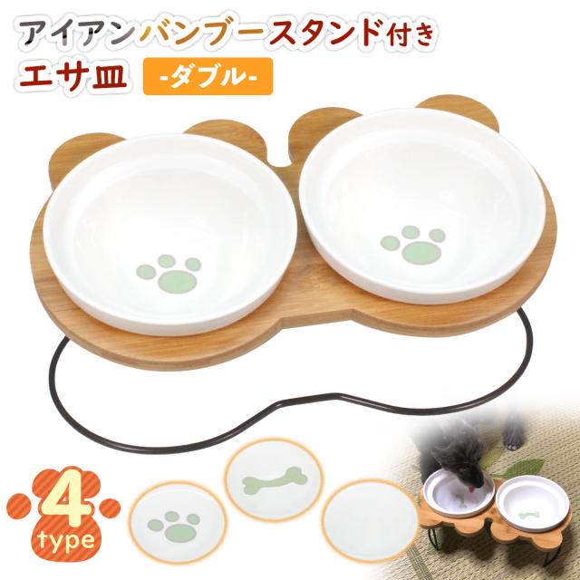 えさ皿 猫 犬 食器 えさ 皿 餌入れ フードボウル アイアンバンブースタンドダブル ペット 猫用 犬用 ご飯皿 お皿 水飲み 食器台 食べやすい 傾斜 陶器