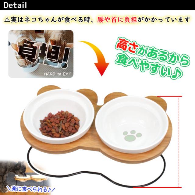木製スタンド付きの高さがあるフードボウルなのでネコちゃん、ワンちゃんがエサを食べやすいようになっています。