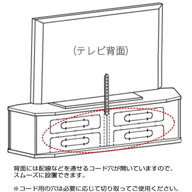 背面にはコードなど配線用の穴が4箇所ありますので、必要に応じて切り取ってご使用ください。