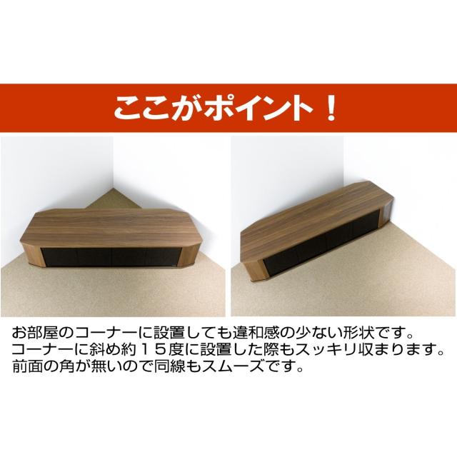 人気のウォールナット色の幅150cmサイズで大型TV対応コーナーテレビ台です。