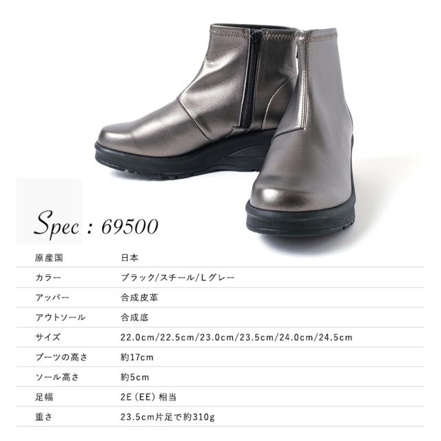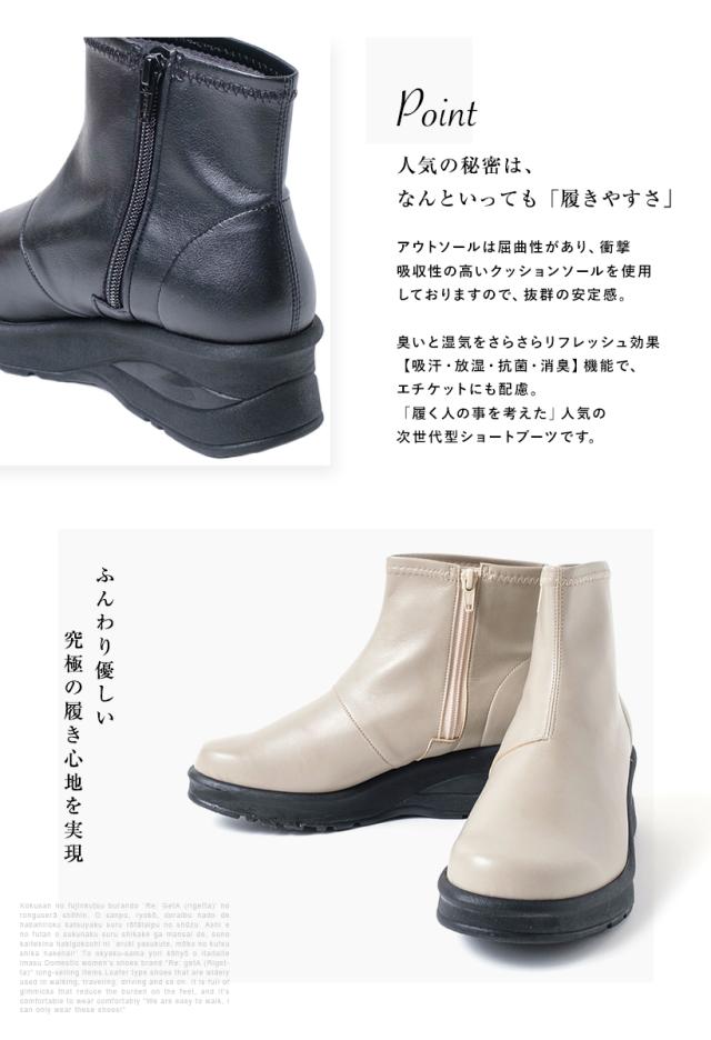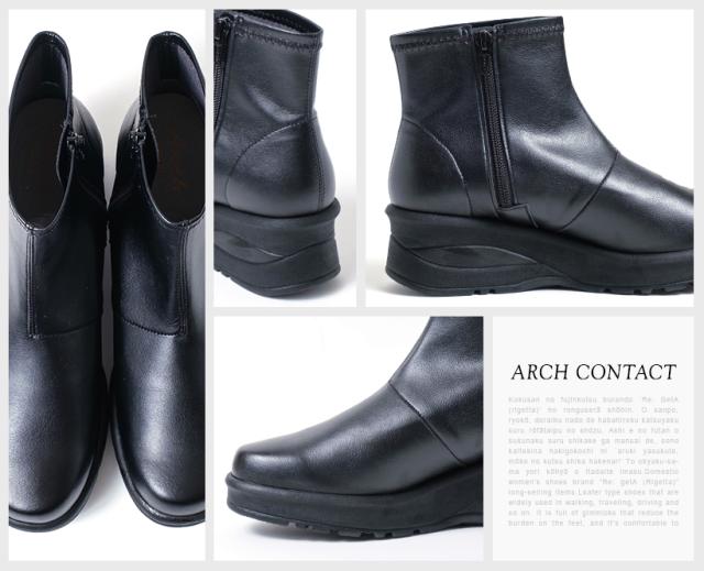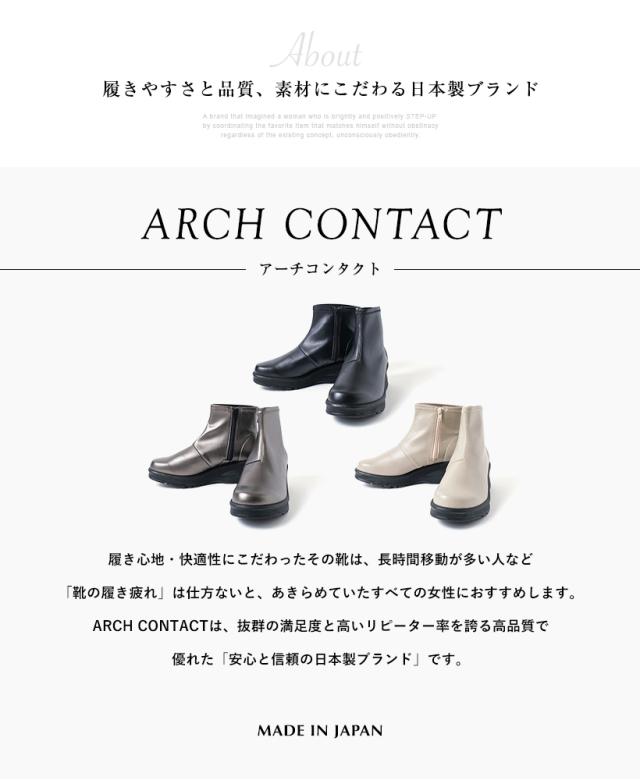 送料無料【日本製】ARCH CONTACT アーチコンタクト ショートブーツ インサイドファスナー付き カップインソール仕様 新作 ストレッチタイプ レディース 69500