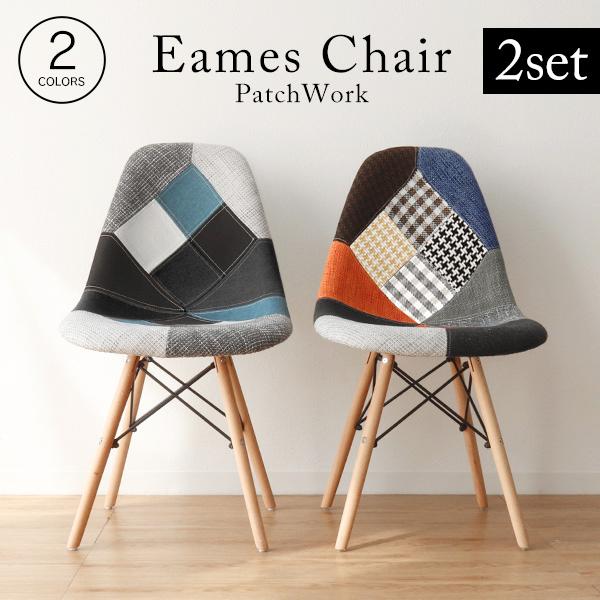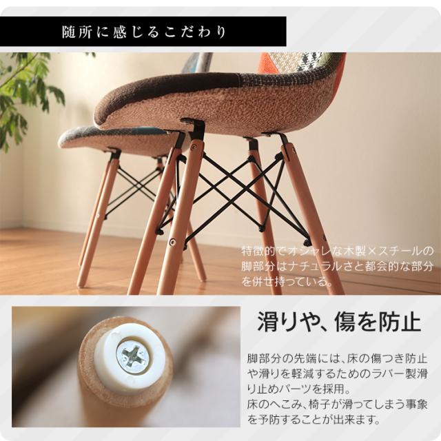 【2脚セット】 ダイニングチェア イームズ チェア パッチワーク ファブリック DSW デザインチェア イームズチェア おしゃれ シンプル 北欧 椅子 いす イス イームズ チェアー デザイン チェア デザイナーズ テレワーク 在宅勤務 リビング 送料無料