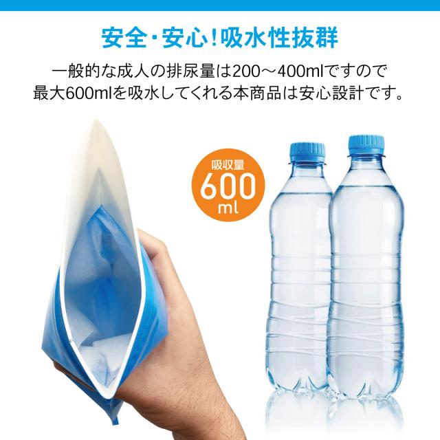 一般的な成人の排尿量は200〜400mlですので、本商品は600mlを吸収してくれるので安心です。