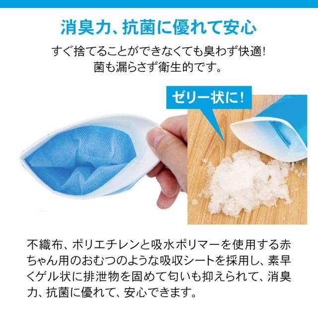 柔らかい素材を採用し、吸水シートタイプで、汚物袋も透けないので衛生的に利用できます。