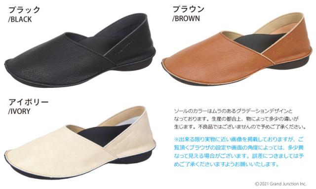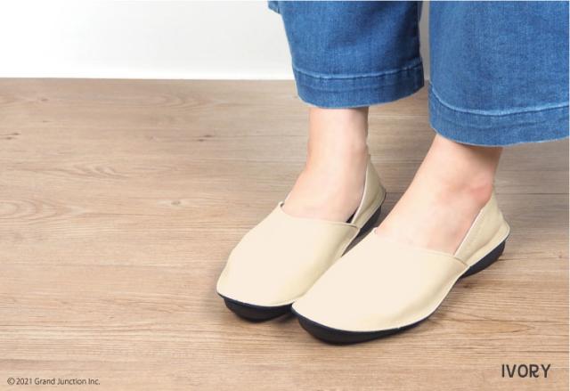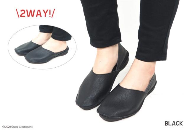 ぺたんこヒールで軽くて履きやすい。ハンドメイドテイストで、柔らかくあたたかみを感じさせる雰囲気も大きな特徴です。本革の雰囲気に似せたナチュラルなシワ感の醸し出す風合いを活かしたシンプルなデザインで様々なコーディネートの足元になじみます。 通気性人工皮革使用で蒸れにくく靴内も快適。足当たりも柔らかく一日中快適に過ごせます。 シーンやお好みに合わせてカカトを踏んでも履いていただける2way仕様です。基本的には外履き用ですが、旅行先での替え靴としてお持ちになったり、オフィス等の室内履きなど、幅広いシーンでご活用いただけるアイテムです。