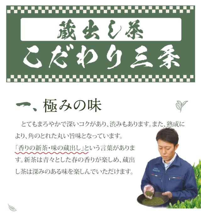 「香りの新茶・味の蔵出し」「冬季限定!蔵出し茶とは」