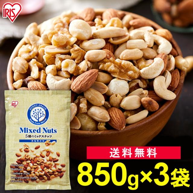 ミックスナッツ 無塩 アーモンド くるみ マカダミアナッツ カシューナッツ ピーナッツ 食塩無添加 5種 850g×3 ミックスナッツ 無塩 アーモンド くるみ マカダミアナッツ カシューナッツ ピーナッツ 大容量 おやつ おつまみ アイリスオーヤマ