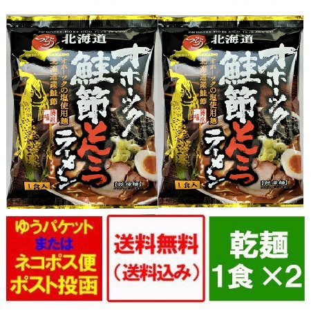 豚骨 ラーメン 送料無料 とんこつ ラーメン つらら 鮭節スープ オホーツクの塩 使用 乾麺 とんこつラーメン 袋麺 1食×2袋 ラーメンスープ 付 北海道 みなみかわ製麺 製造