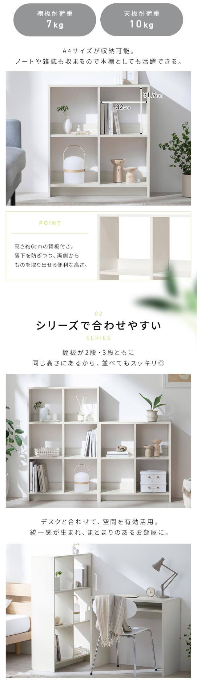 2段・3段と棚板が同じ高さにあるから、並べてもスッキリ◎