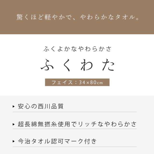 【730値下げ】西川 今治 フェイスタオル わたいろ ふくわた 34×80cm 綿100% 無撚糸 中空無撚糸 無地 シンプル 日本製 今治タオル 吸水性 ギフト