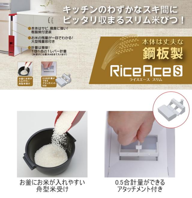鋼板製スリム米びつ ライスエースS 12kg 全3色 米櫃 米びつ 保管 米 スリム すき間 収納 シンプル スタイリッシュ エムケー精工