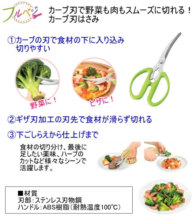 フルベジ カーブ刃はさみ FV-402 ネコポス対応 日本製 はさみ ハサミ カット ギザ刃 下ごしらえ 調理 調理器具 食器洗い乾燥機OK