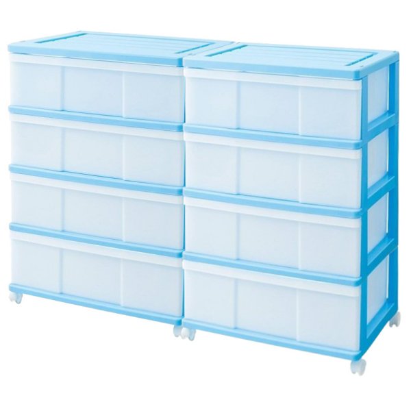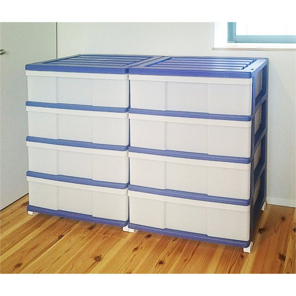収納ケース ボックス 引き出し ワイド チェスト プラスチック 4段 2個組 幅60cm おしゃれ ロイヤルブルー キャスター付 送料無料【自社製造】
