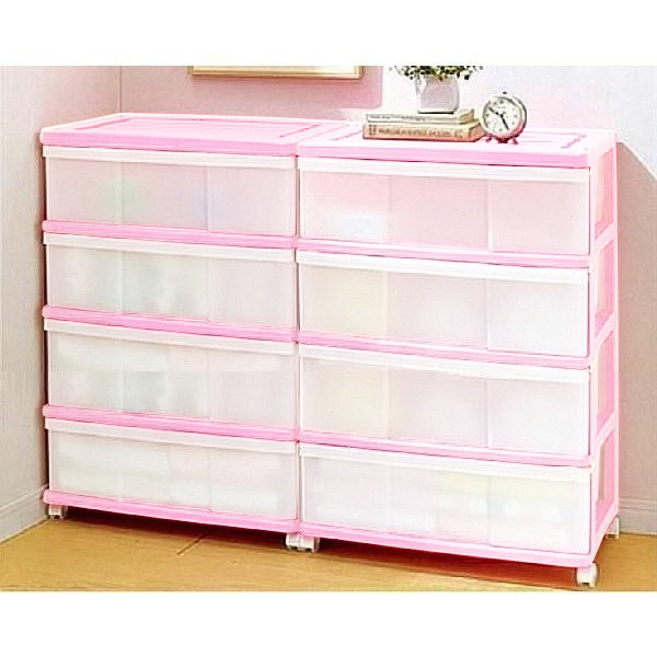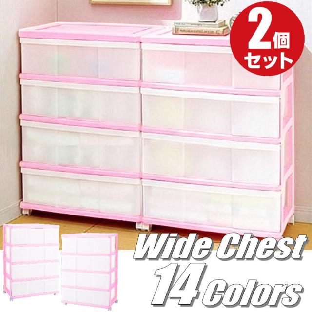 収納ケース ボックス 引き出し ワイド チェスト プラスチック 4段 2個組 幅60cm おしゃれ チェリーピンク キャスター付 送料無料【自社製造】