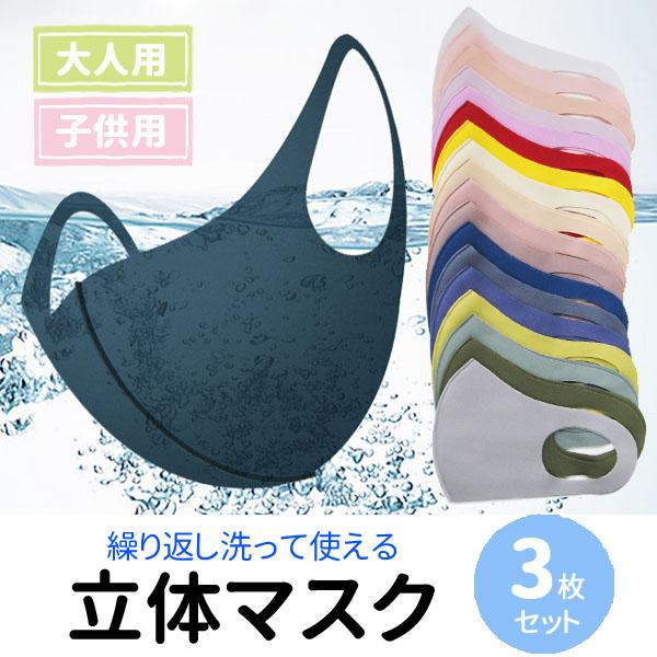 送料無料 500円 マスク 立体 洗える メンズ レディース キッズ 子供 大人 3枚セット カラーミックス くすみカラー UVカット 黒 白 青 全23色 i9mask006