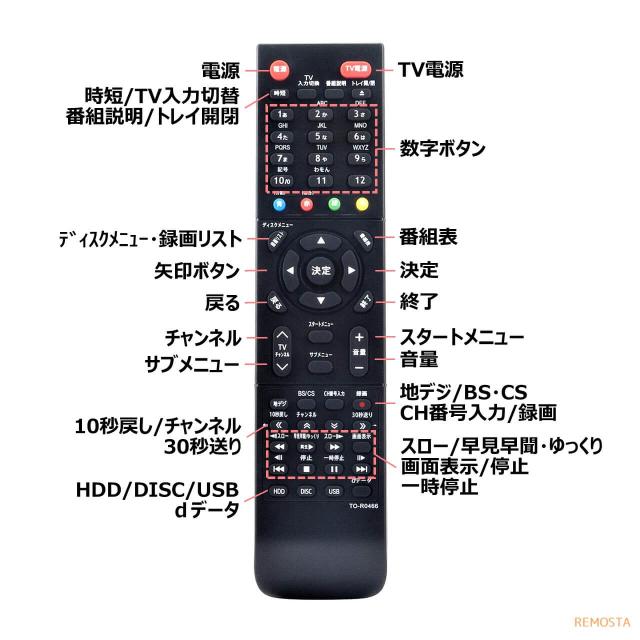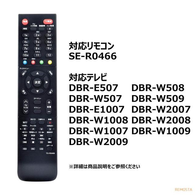 東芝 レグザ ブルーレイ リモコン SE-R0466 DBR-E507 DBR-E1007 DBR-W507 DBR-W1007 DBR-W2007 DBR-W508 DBR-W1008 DBR-W2008 DBR-W509 DBR-W1009 DBR-W2009 TOSHIBA REGZA 代用リモコン レコーダー リモスタ