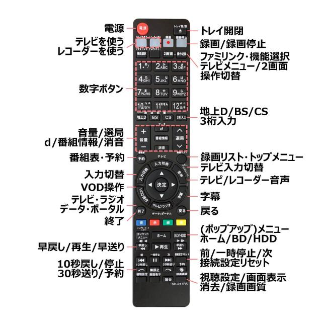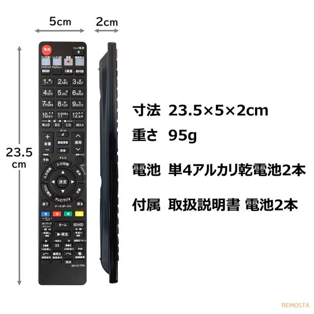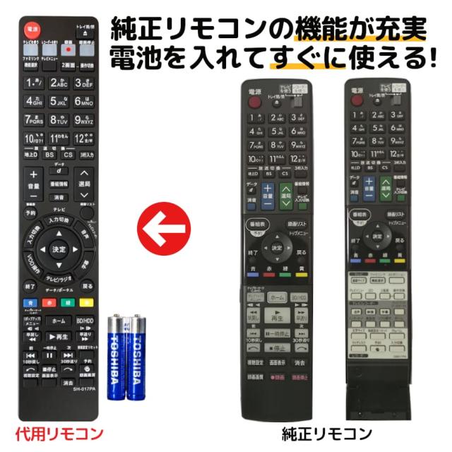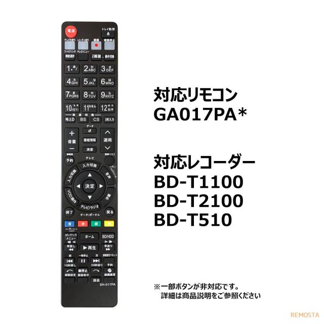 シャープ ブルーレイ リモコン GB017PA 電池付き BD-T1100 BD-T2100 BD-T510 SHARP AQUOS レコーダー 代用リモコン リモスタ