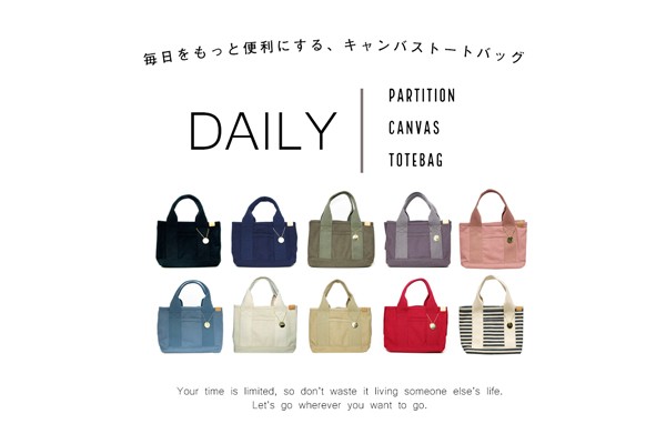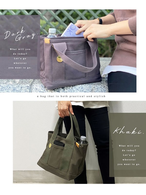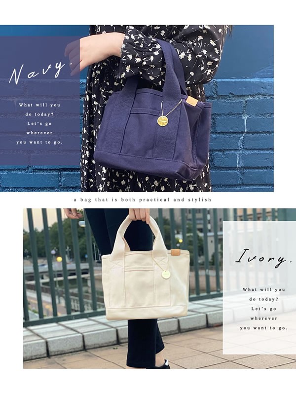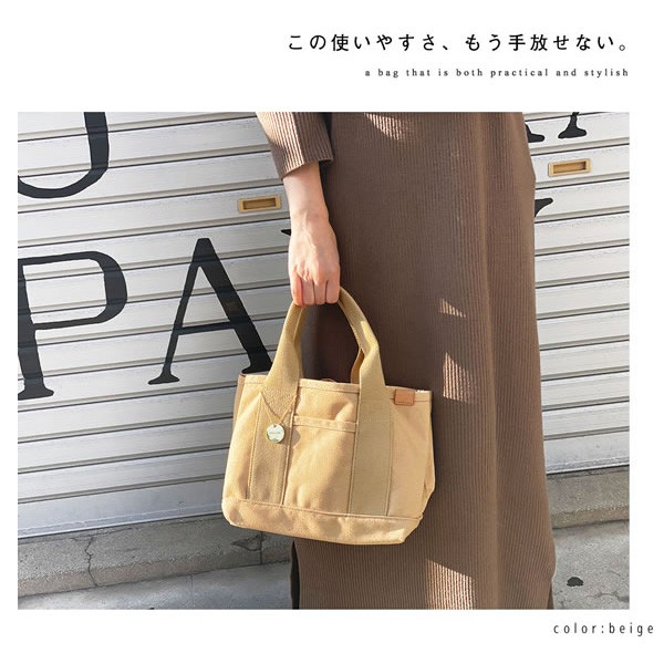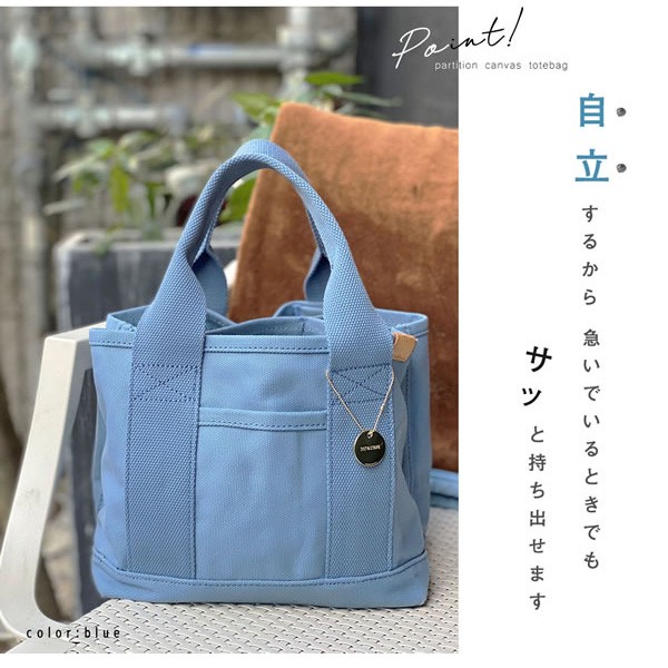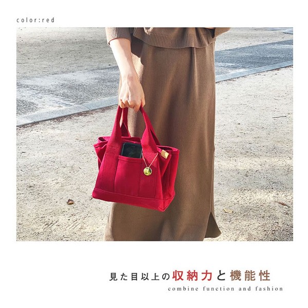 3つの仕切りと2つのポケットでスッキリ収納できるミニトートバッグ。
