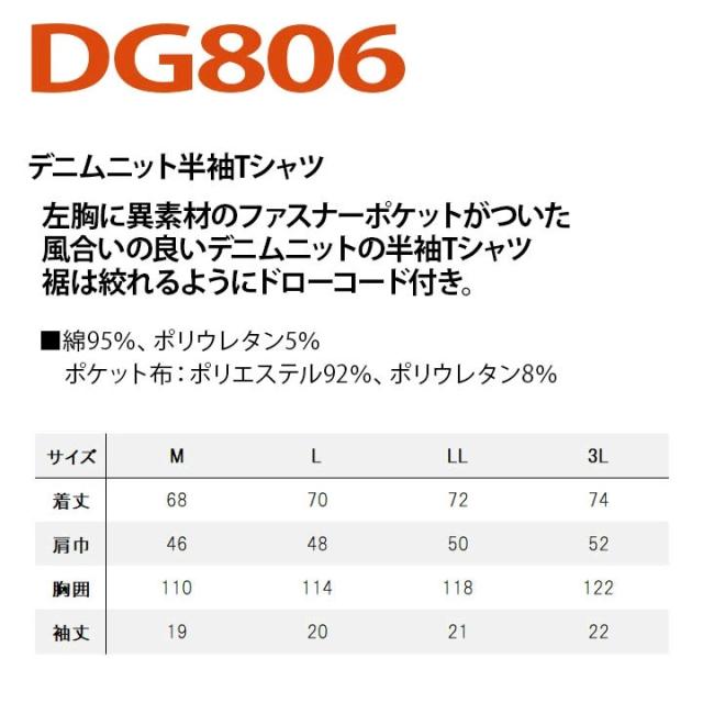 【即日発送】半袖Tシャツ デニムニット DG806 クロダルマ D.GROW ディーグロー メンズ 作業服 作業着【送料無料】【M-3L】