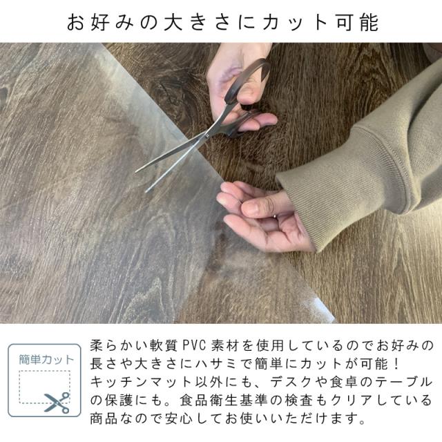 SALE 2380円→1880円 キッチンマット 台所 拭ける PVC 60×270cm 簡単 透明 クリア 汚れ防止 キズ防止 キッチン マット 大判 シンプル クリアマット 床暖房 カット【No3】