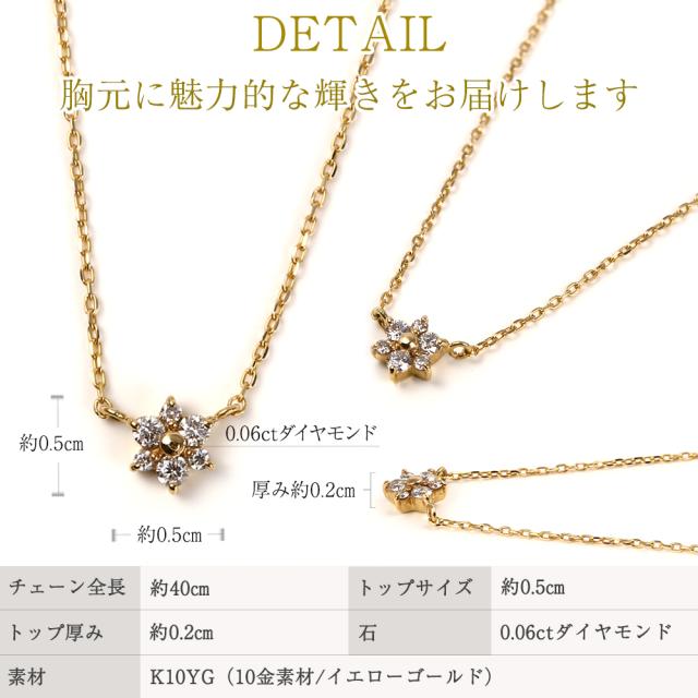 ネックレス レディース ダイヤモンドネックレス ダイヤモンド ネックレス 0.06ct 花 フラワー ダイヤネックレス ダイヤ 10金 地金 K10 10K K10YG ゴールド イエローゴールド 華奢 ペンダント 金属アレルギー 彼女 誕生日 クリスマス プレゼント 女性 ギフト アクセサリー