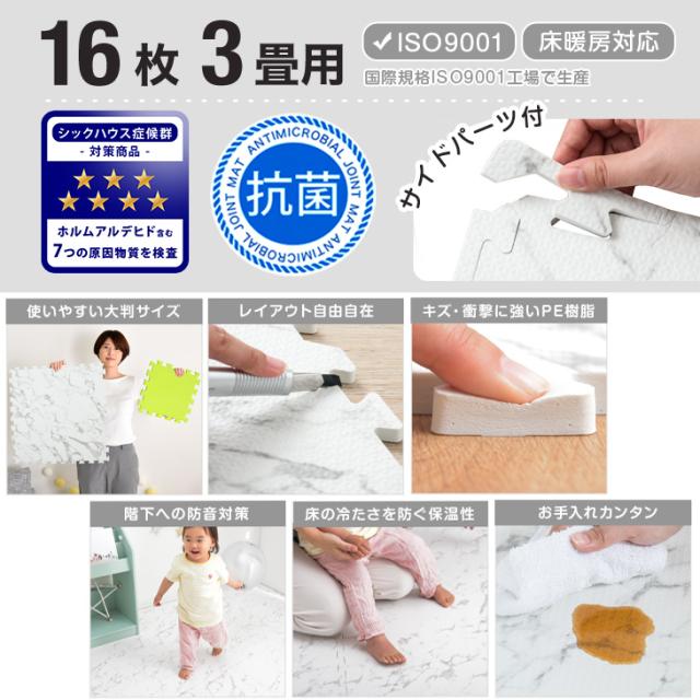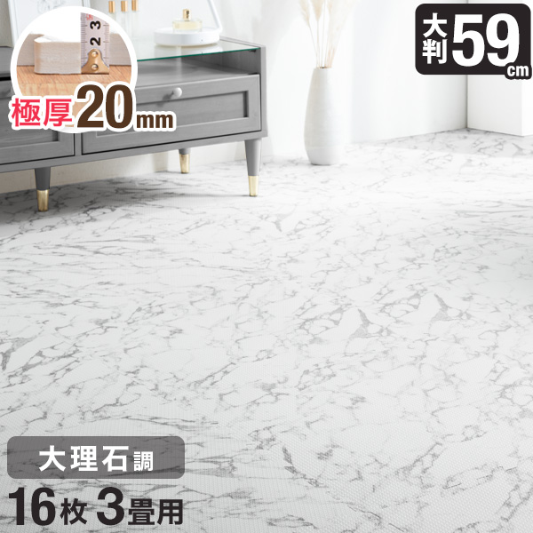 [即納] 【正午〜P5%還元】 ジョイントマット 3畳 大判 極厚 16枚 大理石調 59cm 極厚2cmで防音性・安全性アップ 単色 防音 大理石 洗える ジョイント マット カーペット ベビー フロアマット 床暖房対応 プレイマット クッションマット
