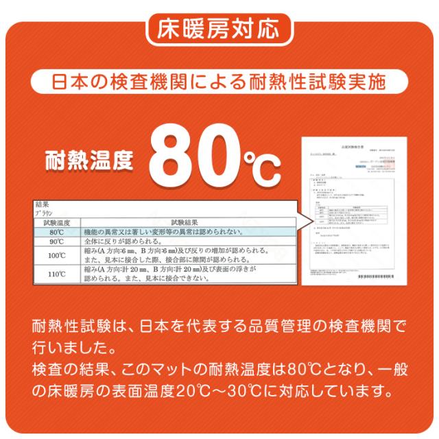 ・床材(塩化ビニル・フローリング等)によって、色移りや変色が起こる場合がございます。床とマットの間に敷物や防護シートを敷いていただくことを推奨しております。