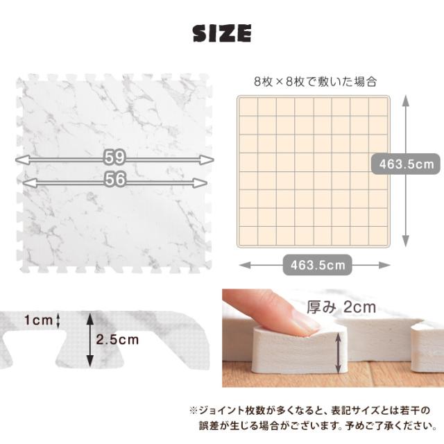 [即納] 【正午〜P5%還元】 ジョイントマット 12畳 大判 極厚 大理石調 極厚2cmで防音性・安全性アップ 59cm 64枚 単色 防音 大理石 洗える ジョイント マット カーペット ベビー フロアマット 床暖房対応 プレイマット クッションマット