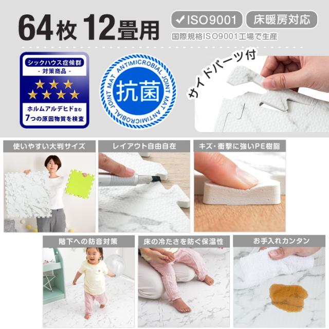 大理石調 ジョイントマット 大判 59cm 12畳用 抗菌 防臭 安心 シックハウス 対策 ジョイント サイドパーツ付 マット 赤ちゃん ベビー フロアマット パズルマット マット【商品番号:3180001700】