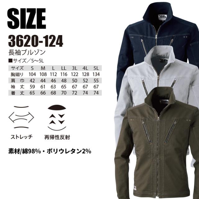 寅壱 長袖ブルゾン 3620-124 オールシーズン 3620シリーズ ジャケット ジャンパー 作業服 作業着 トライチ ストレッチ