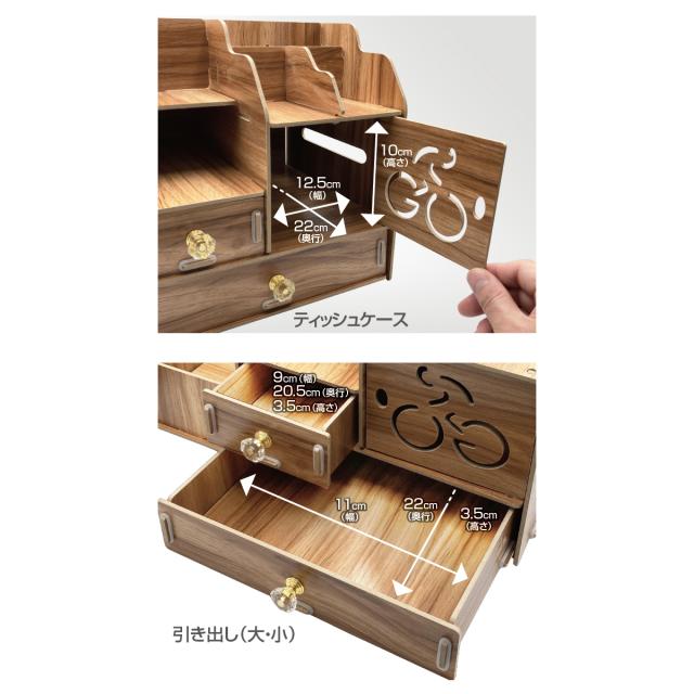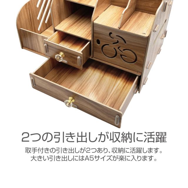 取手式の引き出しが2つあり収納に活躍します。大きい引き出しはA5サイズが楽に入ります。