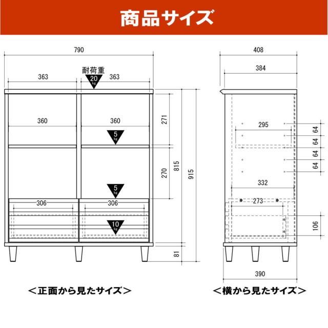 [耐荷重](天板)20kg・(棚板)5Kg・(引き出し)10kg